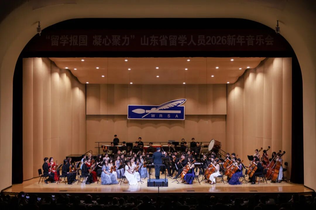 2025年12月27日晚,由省欧美同学会文化艺术委员会、山东艺术学院欧美同学会联合承办,山东省欧美同学会主办的“留学报国 凝心聚力”山东省留学人员2026新年音乐会在济南剧院盛大举行。欧美同学会(中国留学人员联谊会)副会长、省政协副主席、省欧美同学会会长程林致辞,省欧美同学会副会长李琥、龚文东、王浩、祝恩元、张祝秀、王克芳、马晓丽,以及省直统战系统有关领导出席音乐会。音乐学院副院长徐琦和青年教师吴振飞博士分别受邀参加音乐会演出。