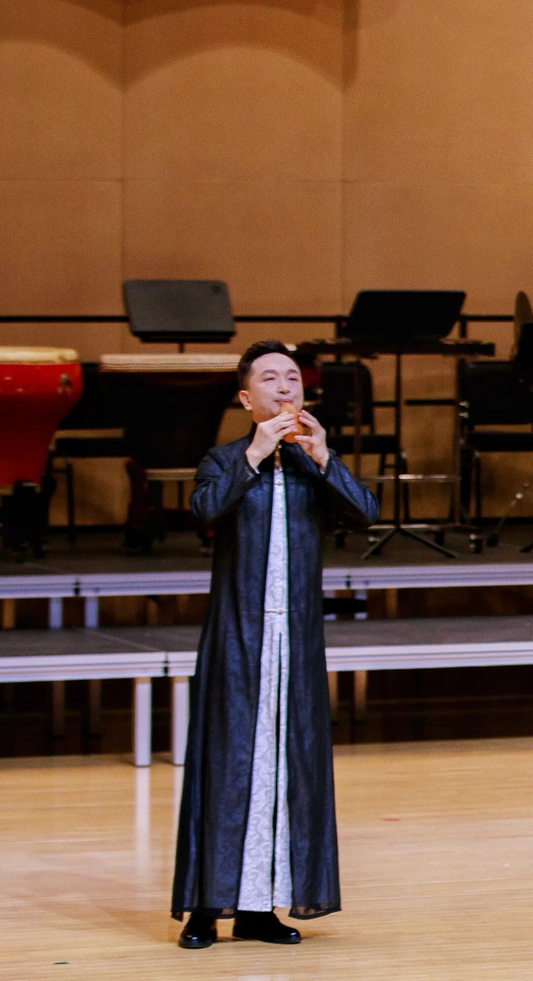 在这场艺术盛宴中,音乐学院徐琦副院长在经典曲目《梅花三弄》中担任古埙演奏,其娴熟的技艺将传统民乐的悠远意境与非遗文化的独特魅力完美融合。