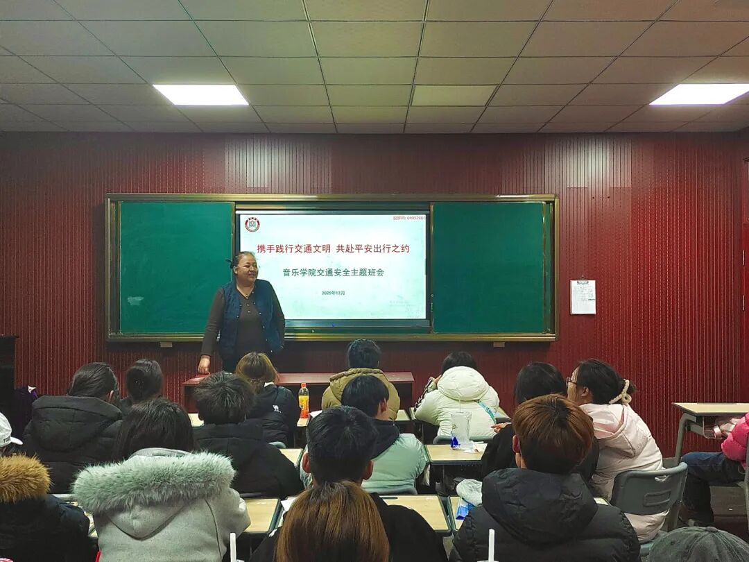 为扎实推进校园交通安全教育,引导学生牢固树立规则意识、责任意识和风险防范意识,12月4日下午,音乐学院在102教室开展“文明交通 礼行天下”交通安全主题班会。学院党委副书记、辅导员及各年级学生代表共同参加。