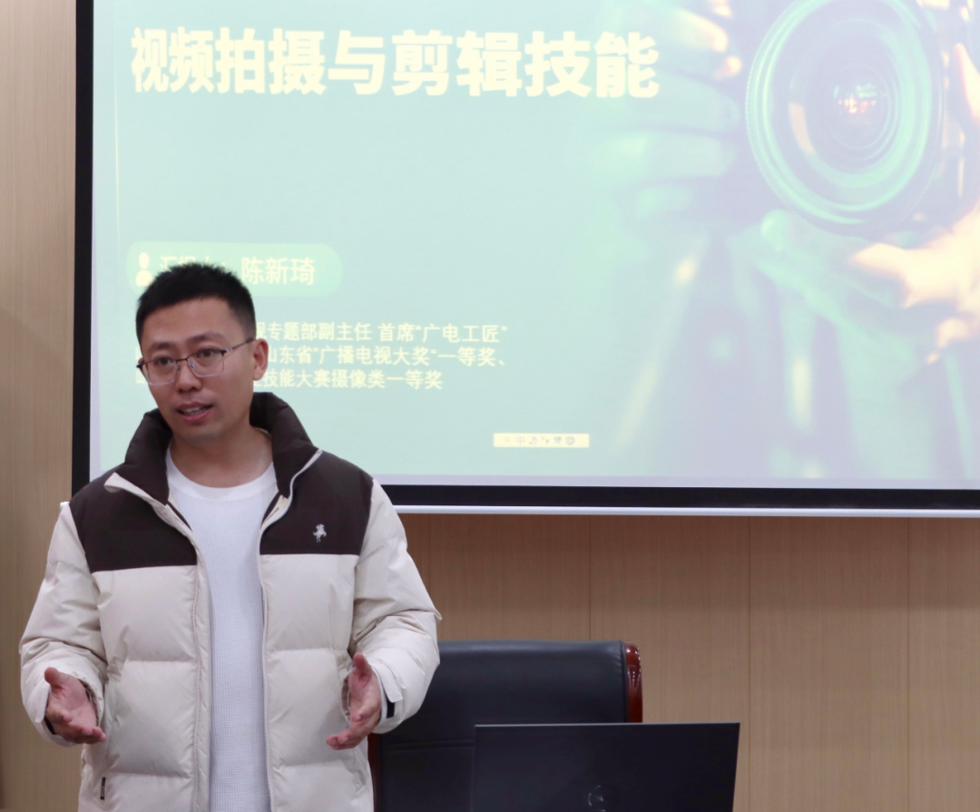 讲座中,陈新琦结合自身在广播电视领域的多年实践经验,从新媒体时代的传播特点切入,深入剖析了信息传播的规律与挑战。他强调,在内容爆炸的时代,创作者需具备“内容+技术+安全”的综合能力,才能在海量信息中脱颖而出。在拍摄技能环节,他重点讲解了构图方法、光线把控、镜头运用等核心知识,通过实际案例解析与现场演示,生动阐释了高质量视觉内容的创作要领。