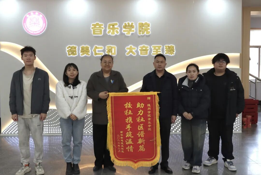 一面锦旗,映照初心;一份肯定,更添动力。下一步,德州学院音乐学院将继续深化校地共建机制,拓展志愿服务内容,搭建更加多元的实践育人平台,引导青年学子在服务基层中锤炼本领、厚植情怀,以文艺力量赋能社区发展,共同书写校社合作、双向奔赴的新篇章。