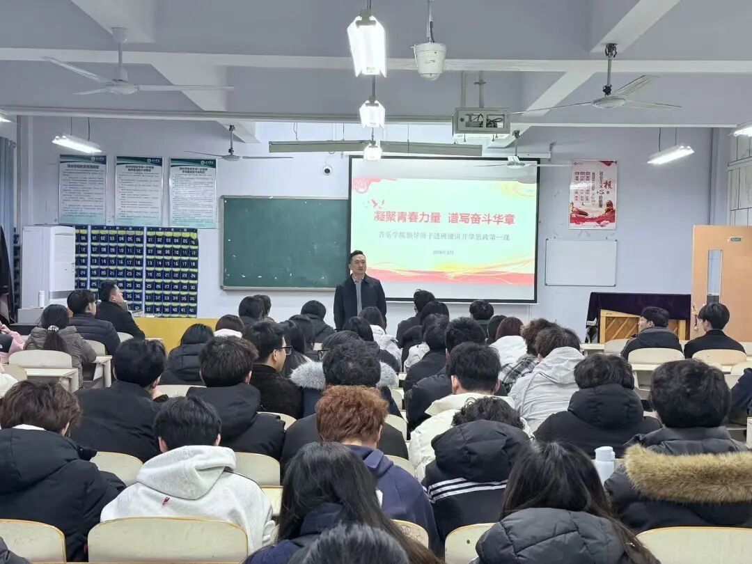 针对2025级新生,院长马锡骞以“赓续红色血脉,勇担时代使命”为题讲授开学第一课,聚焦理想信念启蒙教育,引导新生扣好大学生涯第一粒扣子,坚定理想信念,厚植家国情怀,树立正确的世界观、人生观、价值观,以昂扬向上的精神风貌开启大学生活。