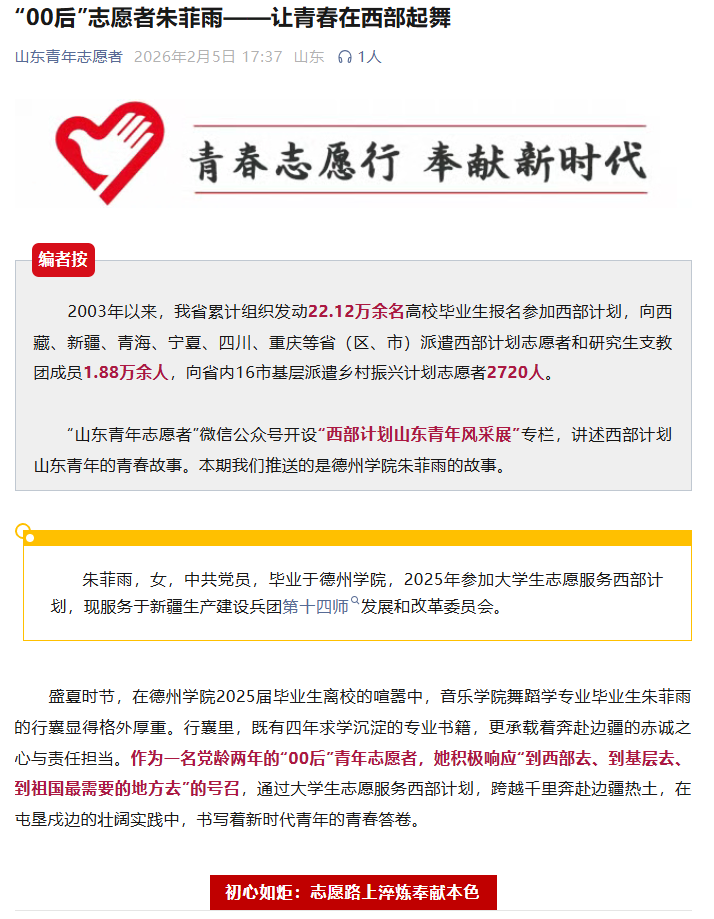 “00后”志愿者朱菲雨——让青春在西部起舞